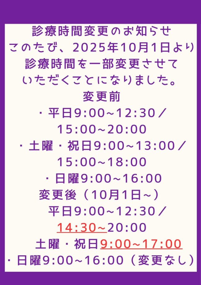 診療時間が一部変更となります
